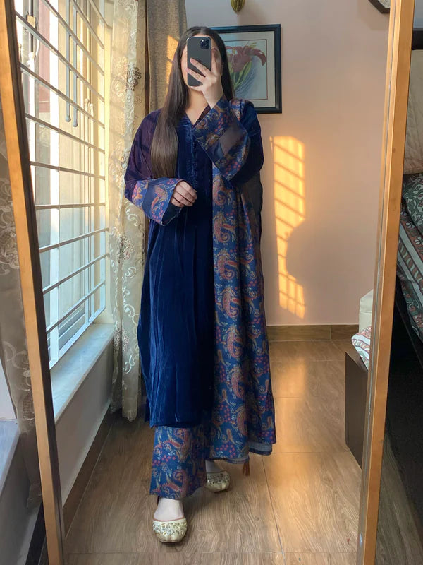 Kashaf - Velvet Dress with Printed Dhanak Shawl kp33120